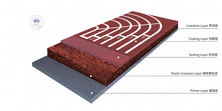 采用EDPM橡膠顆粒作為底層,聚氨酯底膠封底,聚氨酯面漆和膠漿作為面層鋪設(shè)而成,具有彈性好、色澤鮮艷、強(qiáng)度高、耐磨、防滑、耐低溫、防震隔音經(jīng)久耐用等特點(diǎn)。由于其采用獨(dú)特的聚氨酯PU封底,在高寒地區(qū)雨雪延伸不進(jìn)塑膠跑道彈性層,是我國高寒地區(qū)首選體育運(yùn)動(dòng)場地田徑跑道產(chǎn)品。